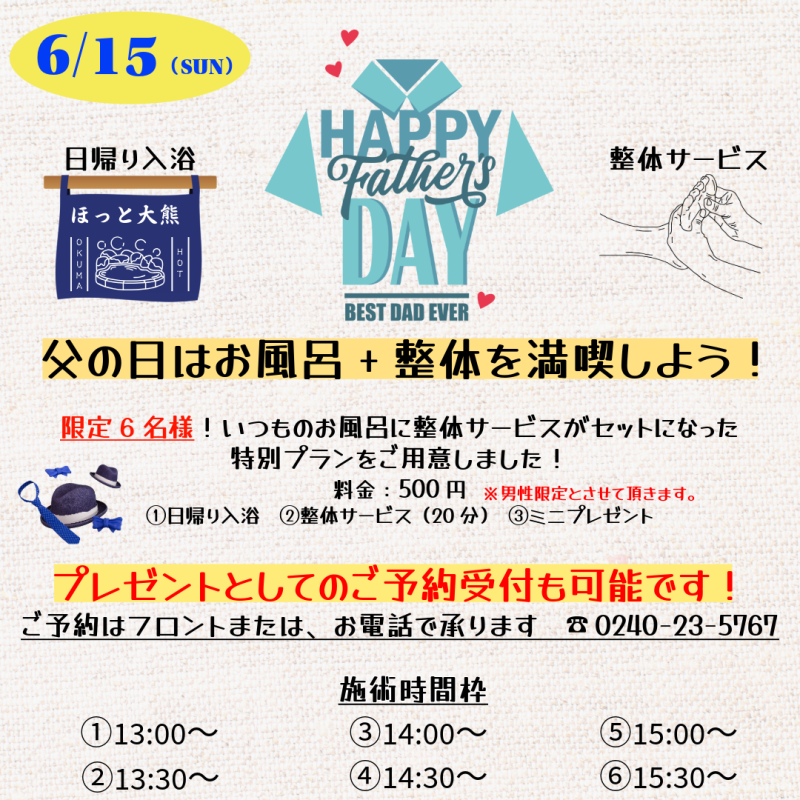 2025.6/15(日)「父の日整体サービス」