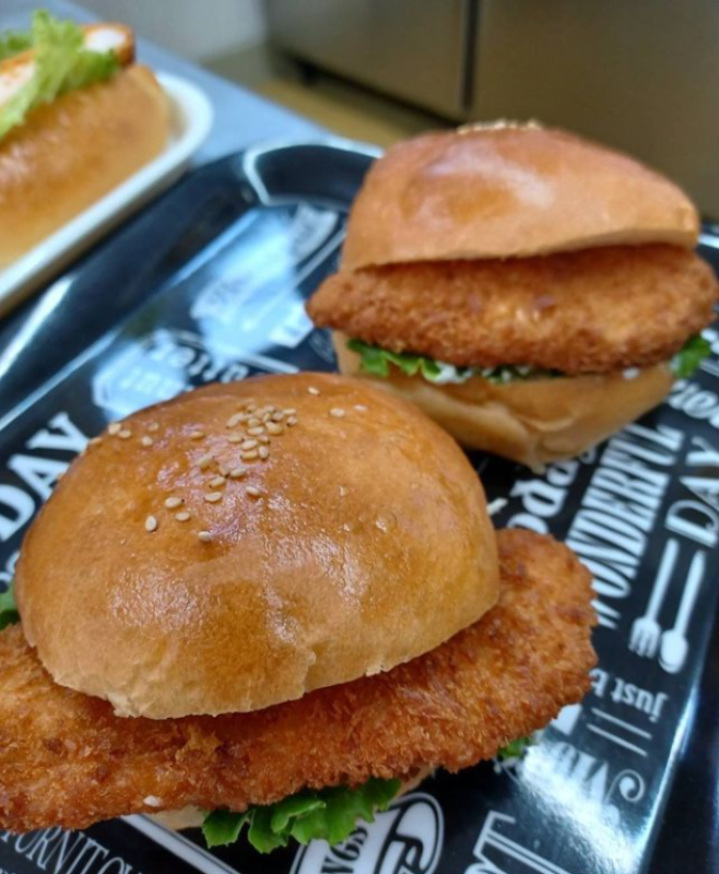 バーガーからはみ出るくらい大きめのフィシュフライとタルタルソースをサンドしたフィシュバーガーです♪