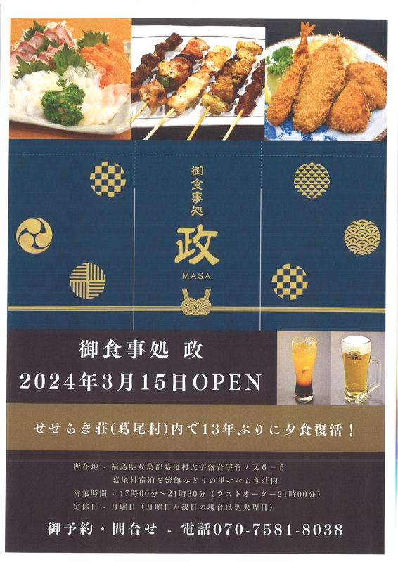 せせらぎ荘(葛尾村)内で13年ぶりに夕食復活!