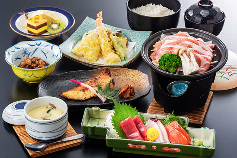 ■御夕食例 先付・造里・煮物・揚物・鍋物・水菓子・御椀 追加料理はお電話にてお問い合わせください。