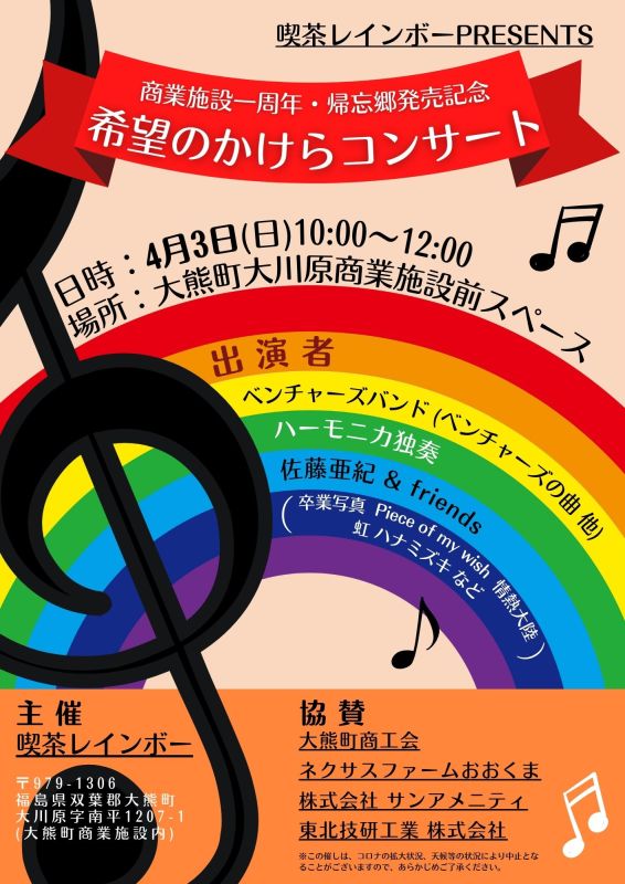 住所:福島県双葉郡大熊町大川原字南平1207-1(大熊町商業施設内)