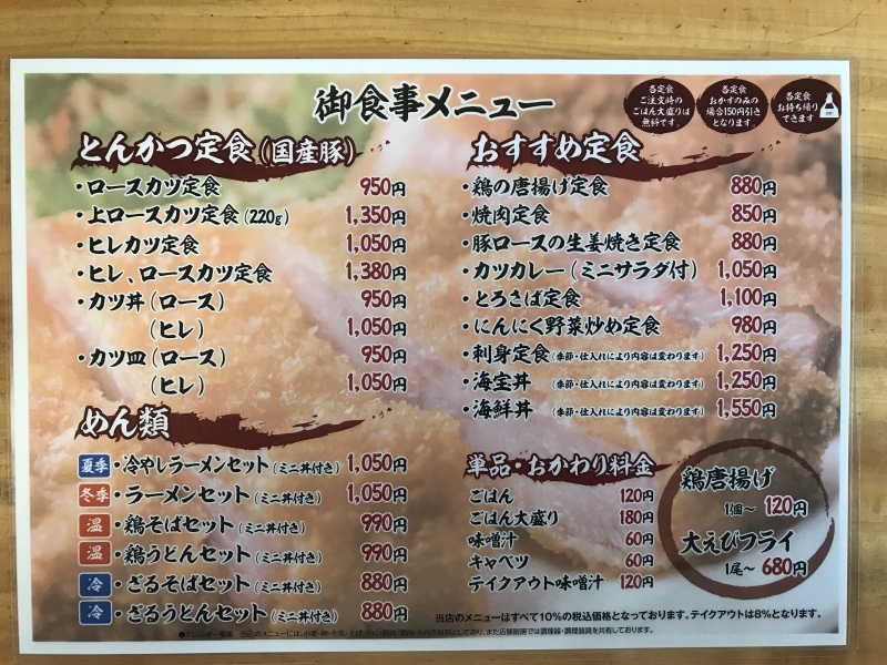 | ヒレ、ロースカツ定食 | 1,380円 |