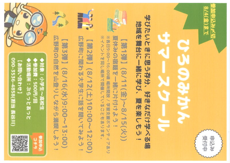 ※各日9:00〜16:00頃 場所開放/学習支援ボランティアあり