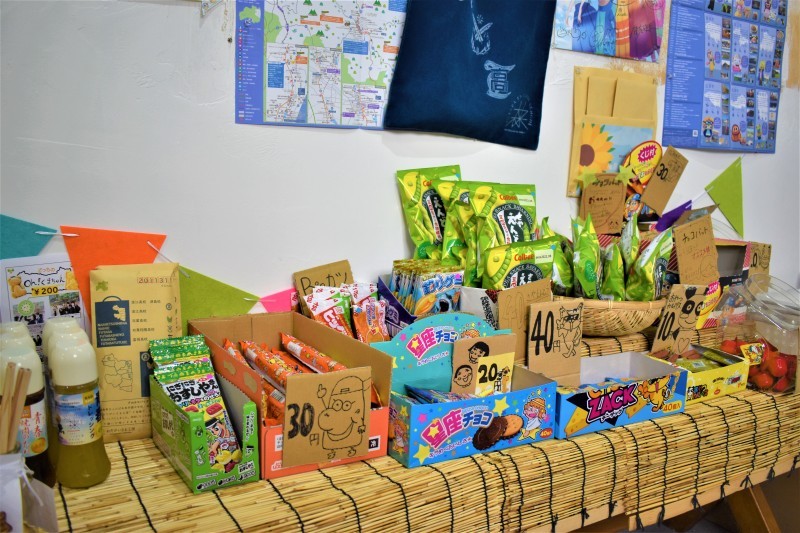 駄菓子の販売や地域に関連した商品の販売♪