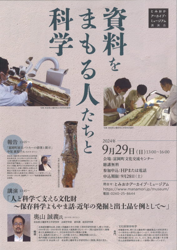 「人と科学で支える文化財 ~保存科学よもやま話-近年の発掘と出土品を例として~」