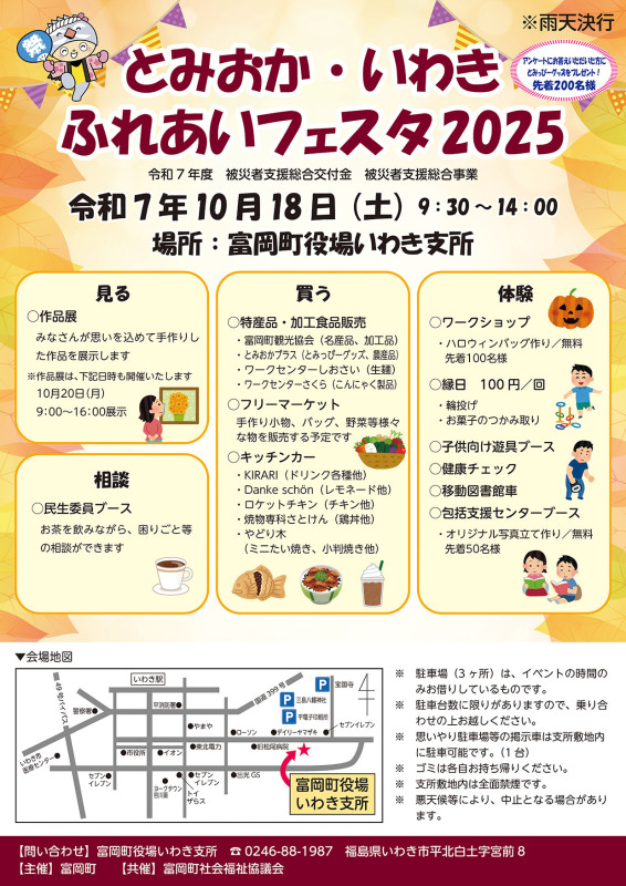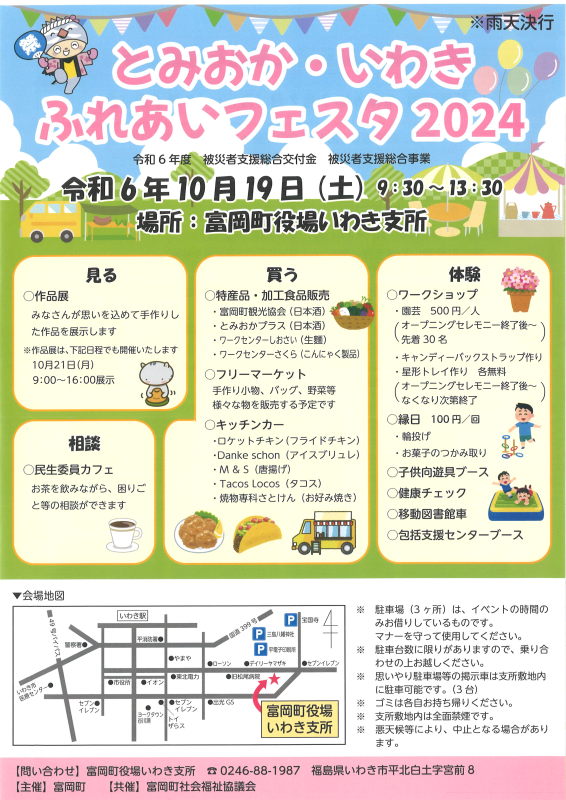 富岡町社会福祉協議会いわき支所(いわき市平北白土字宮前8番地)TEL.0246-38-3580