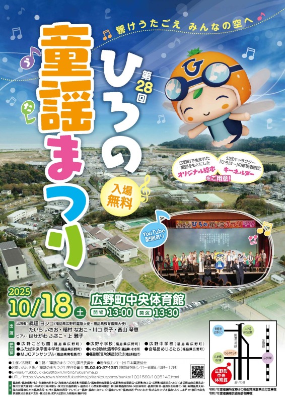 ☆ご来場の皆さまには、広野町で生まれた童謡をもとにした「オリジナル絵本」と、広野町公式キャラクター「ひろぼーの来場者限定キーホルダー」をプレゼント!