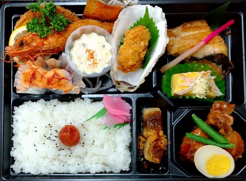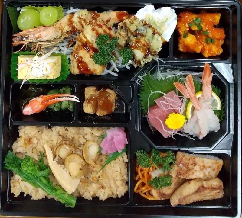 【お弁当見本1】 お弁当の仕出しも承っております。好みや予算など、お客様一人一人の要望にあったお弁当づくりを心がけています。お気軽にご相談ください。 ※画像をクリックすると拡大した写真がご覧いただけます。